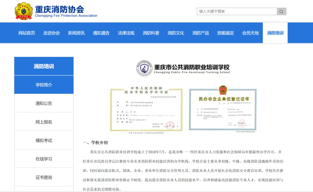 重庆市唯一一所市级和4A级的消防职业培训学校